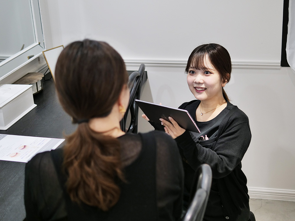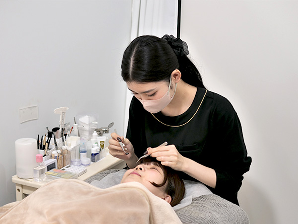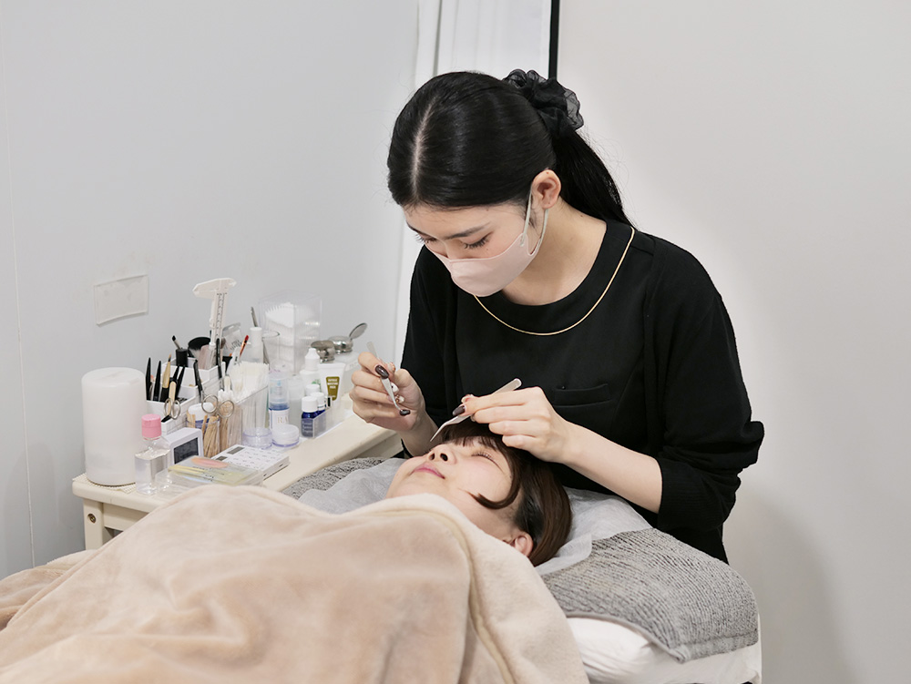 お客様の目元美を作る事の喜びや、感謝される事の充実感を感じながらスタッフが心に余裕を持って活躍できる様に個々のレベルに合わせて、マンツーマンで指導をしています。